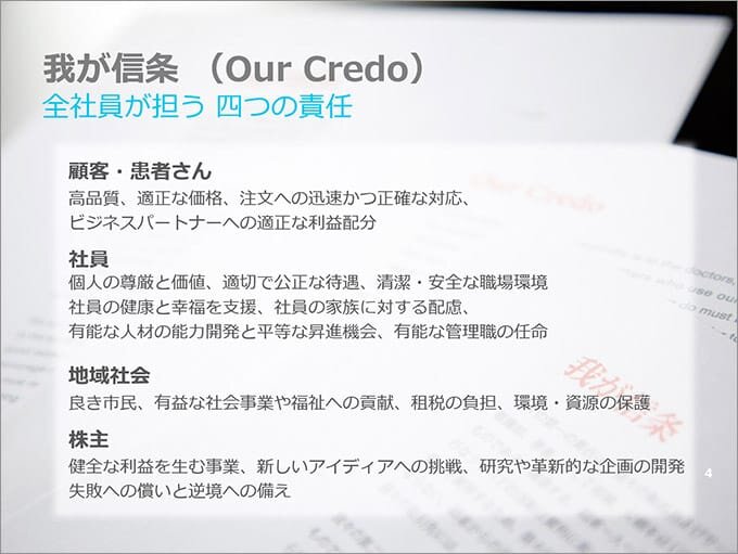 すべての活動の拠り所となる「我が信条(Our Credo)」