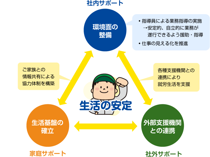 - 今後も、産業医や障がい者雇用に関する専門機関など、外部の力も借りながら、誰もが安心して働くことができる職場づくりを続けていきたいです。