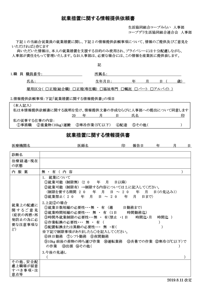 コープデリオリジナルの情報提供依頼書
