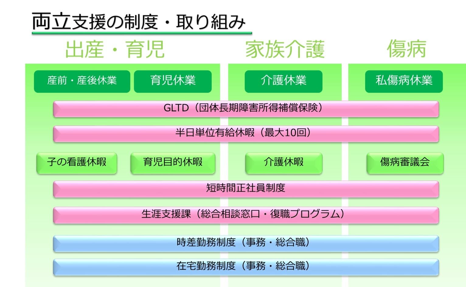 具体的な両立支援の仕組みや支援制度をお聞かせください。