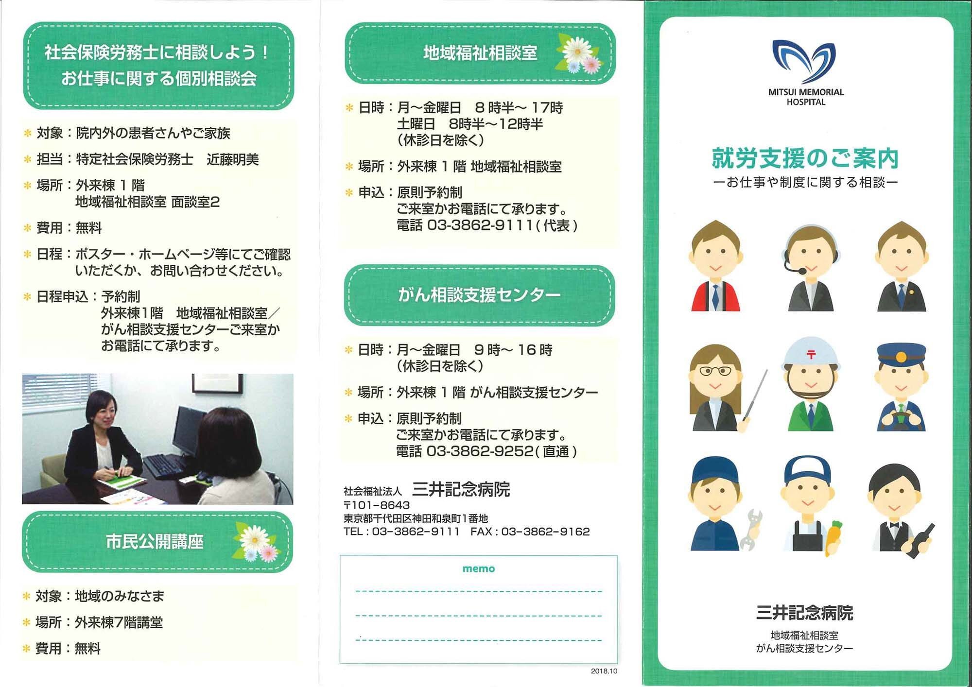 2012年、がん対策基本法に基づいて策定されたがん対策推進基本計画(第2期)において、「がんになっても安心して暮らせる社会を目指すために、働く世代の就労の課題に取り組むこと」が盛り込まれたことがきっかけとなり、社会保険労務士と顧問契約を締結し、社会保険労務士による就労個別相談会を開催し、がん患者さんの相談に応じることにしました。