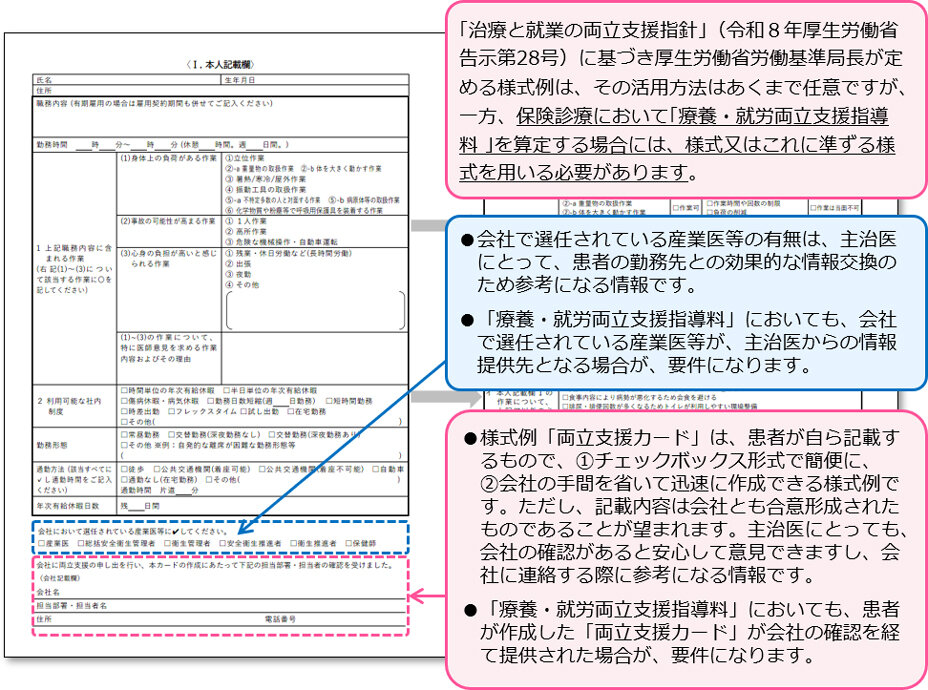 医療機関が受け取る勤務情報について、患者が作成した【様式「治療と仕事の両立支援カード」】が事業者の確認を経て提供された場合を追加 |