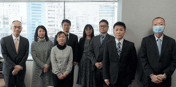 - (左から)兵庫労働局 局長 畑中啓良、兵庫県立がんセンター がん相談支援センター 看護師長 伊藤由美子氏、関西労災病院 医療連携総合センター MSW 平田直子氏、日本製鉄株式会社 君津製鉄所 総括産業医 宮本俊明氏、シスメックス株式会社 人事部 労務政策課 シニアカウンセラー 播野雅子氏、株式会社アシックス 人事総務統括部 総務部 健康推進チームマネジャー 下川幸治氏、兵庫産業保健総合支援センター 副所長 畑中義春氏、兵庫労働局 健康課長 大森安成氏