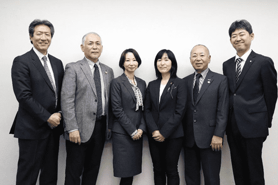- (左から)中国労災病院 治療就労両立支援センター 所長 豊田章宏氏、二九精密機械工業株式会社 代表取締役社長 二九良三氏、京都産業保健総合支援センター 産業保健専門職 松田雅子氏、京都大学医学部附属病院 地域ネットワーク医療部 医療ソーシャルワーカー 隈村綾子氏、二九精密機械工業株式会社 専務執行役員 大川智司氏、京セラ株式会社 人事部人事課 責任者 溝渕博也氏